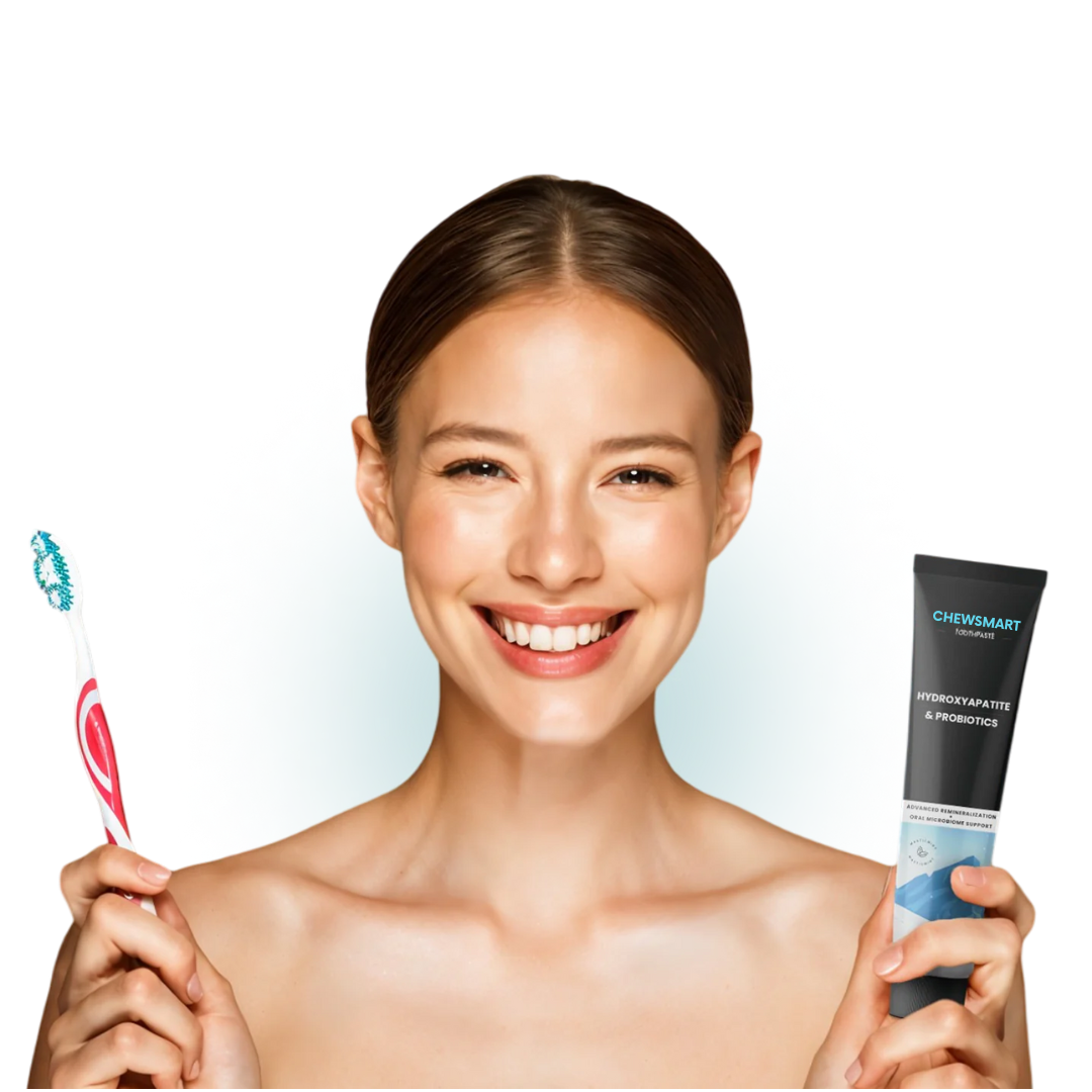 ChewSmart is crafted with 100% natural ingredients, including hydroxyapatite for enamel repair, probiotics for a balanced oral microbiome, and natural mint for long-lasting freshness. Unlike regular toothpastes, it contains no fluoride, sulfates, or artificial flavors, making it a safer and more effective choice for dental care.