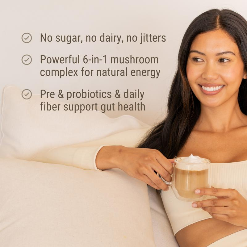 This advanced daily drink mix combines the power of functional mushrooms, prebiotics, and probiotics to nourish your microbiome, support mental clarity, and strengthen your body’s natural defenses. With only 1/20th the caffeine of a regular cup of coffee, it offers clean, sustained energy without the jitters or crashes.