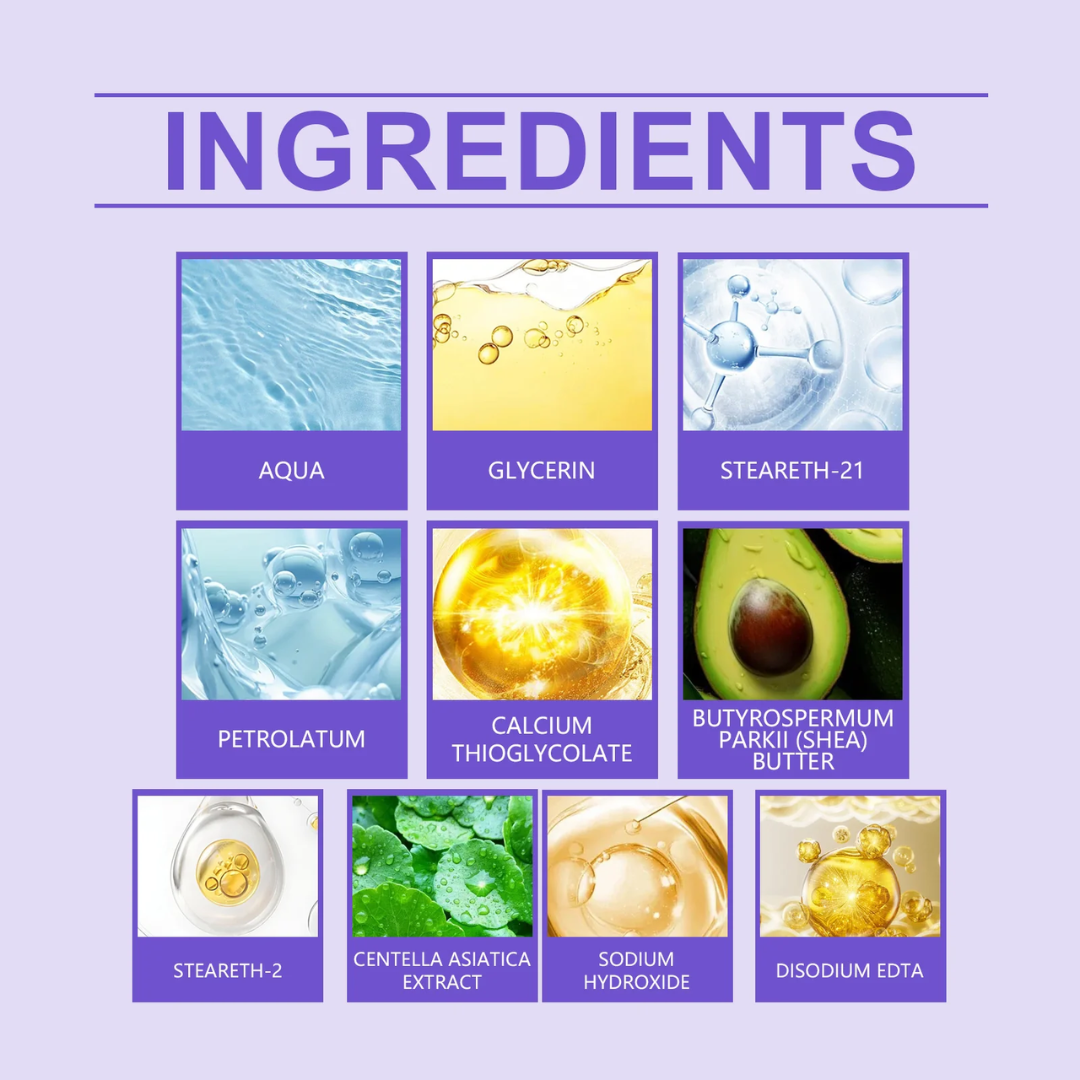Infused with soothing ingredients like Shea Butter and Centella Asiatica Extract, this cream doesn’t just remove hair—it also nourishes and hydrates your skin, keeping it soft and smooth.
