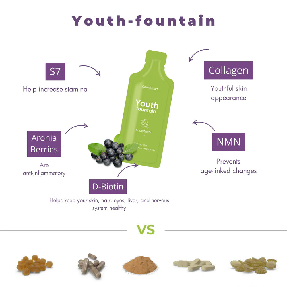 Wanda F.Verified BuyerTastes great!I’ve been using Youth for about a month now and I’m so impressed! The packaging is sleek and easy to use, and the Superberry flavor is delicious. I’ve noticed my skin looks more hydrated and my hair and nails are stronger. It’s definitely a bit pricey, but the results are worth it. I feel more confident and youthful.Youth-fountain Was this helpful? 14 1